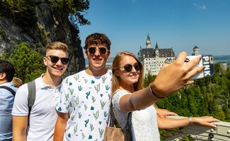 Entspannt erkunden: Wir bieten komfortable Tagestouren ab München zu den schönsten Sehenswürdigkeiten Bayerns an, bei denen Sie auch Schloss Neuschwanstein stressfrei genießen können und sich ganz auf die beeindruckende Landschaft und das Schloss fokussieren können.