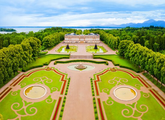 Das "Bayerische Versailles" entstand ab 1878 auf der Herreninsel im Chiemsee. Als Hommage an Ludwig XIV. und das absolutistische Gottesgnadentum konzipiert, blieb es nach Ludwigs Tod 1886 unvollendet. Der große Spiegelsaal übertrifft sogar sein Vorbild in Schloss Versailles um zwei Meter Länge.